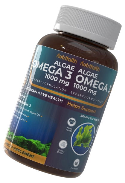 NutriFaith Algae Omega 3 1000 mg is a premium, plant-based omega-3 supplement derived from Schizochytrium algae oil, providing a clean and sustainable source of essential fatty acids DHA and EPA.